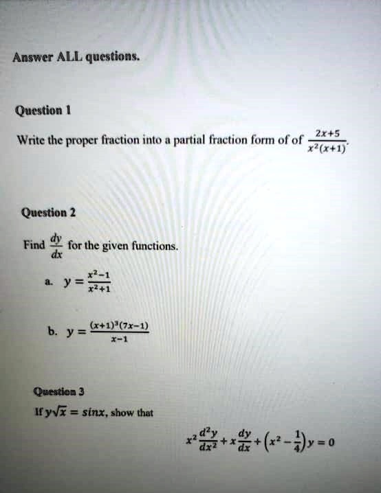 Solved Answer All Questions Question Partial Fruction Form Of Of 2x 5 Write The Proper Fraction Into 7 Question 2 Find For The Given Functions 2 Y Gu U 4 Y 1 1 Questiom